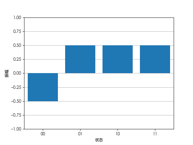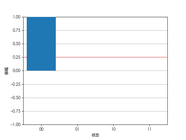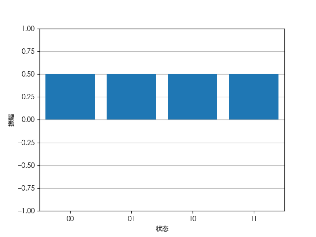 \ket{\psi}=\frac{1}{2}\begin{bmatrix}1\\1\\1\\1\end{bmatrix}以状态为横坐标,振幅为纵坐标绘图有: