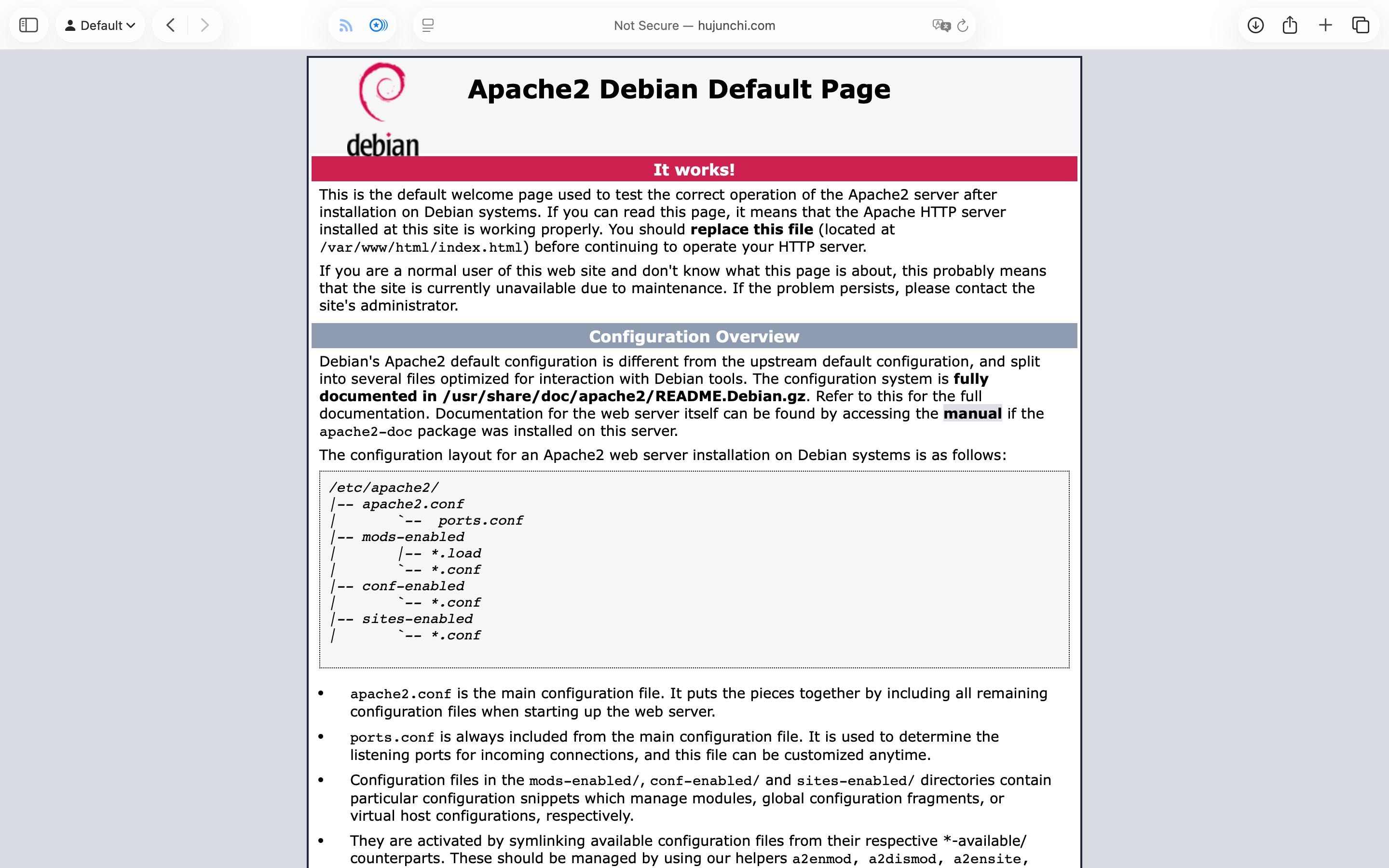 访问 http://<服务器IP> 应显示 Apache 默认页: