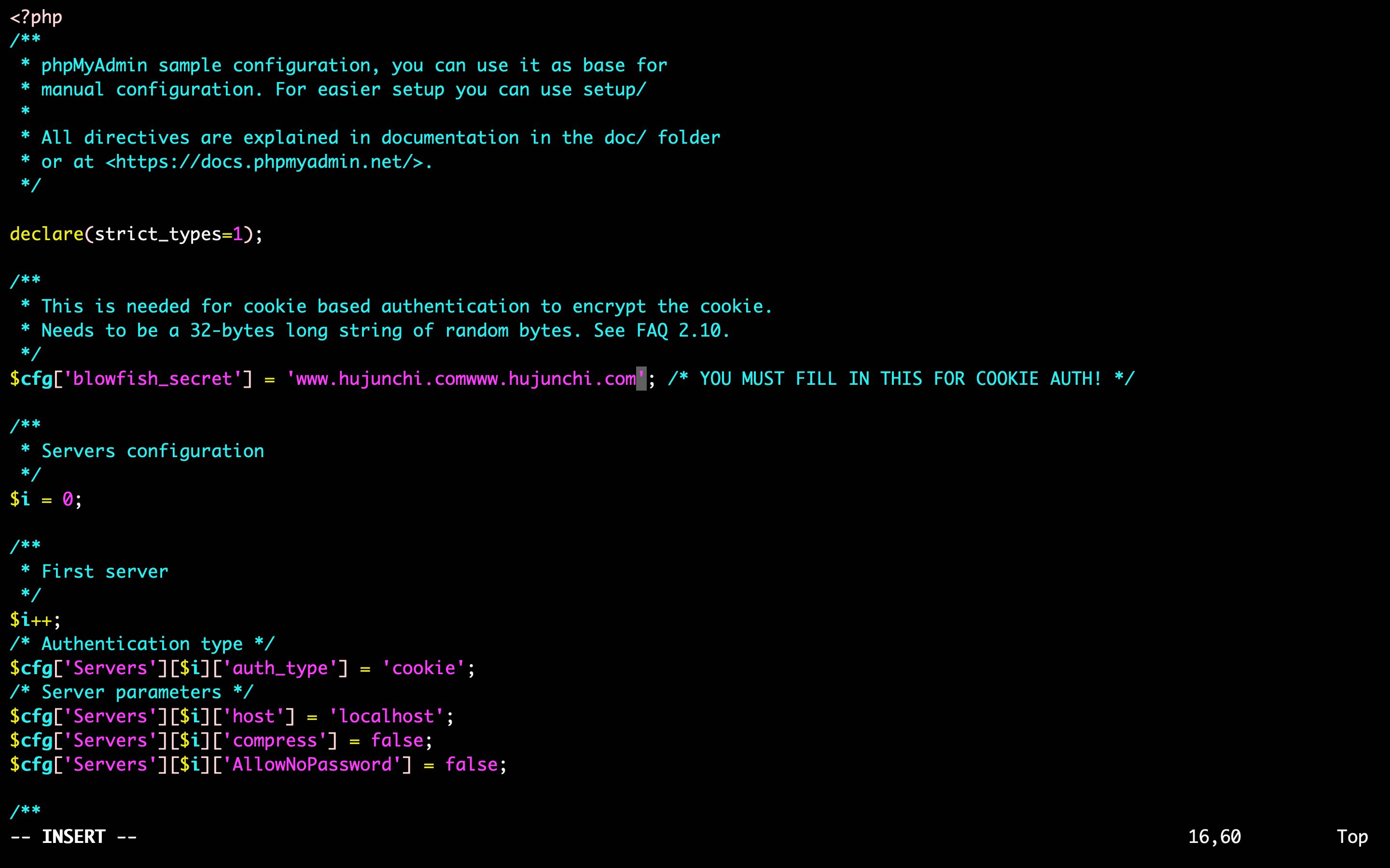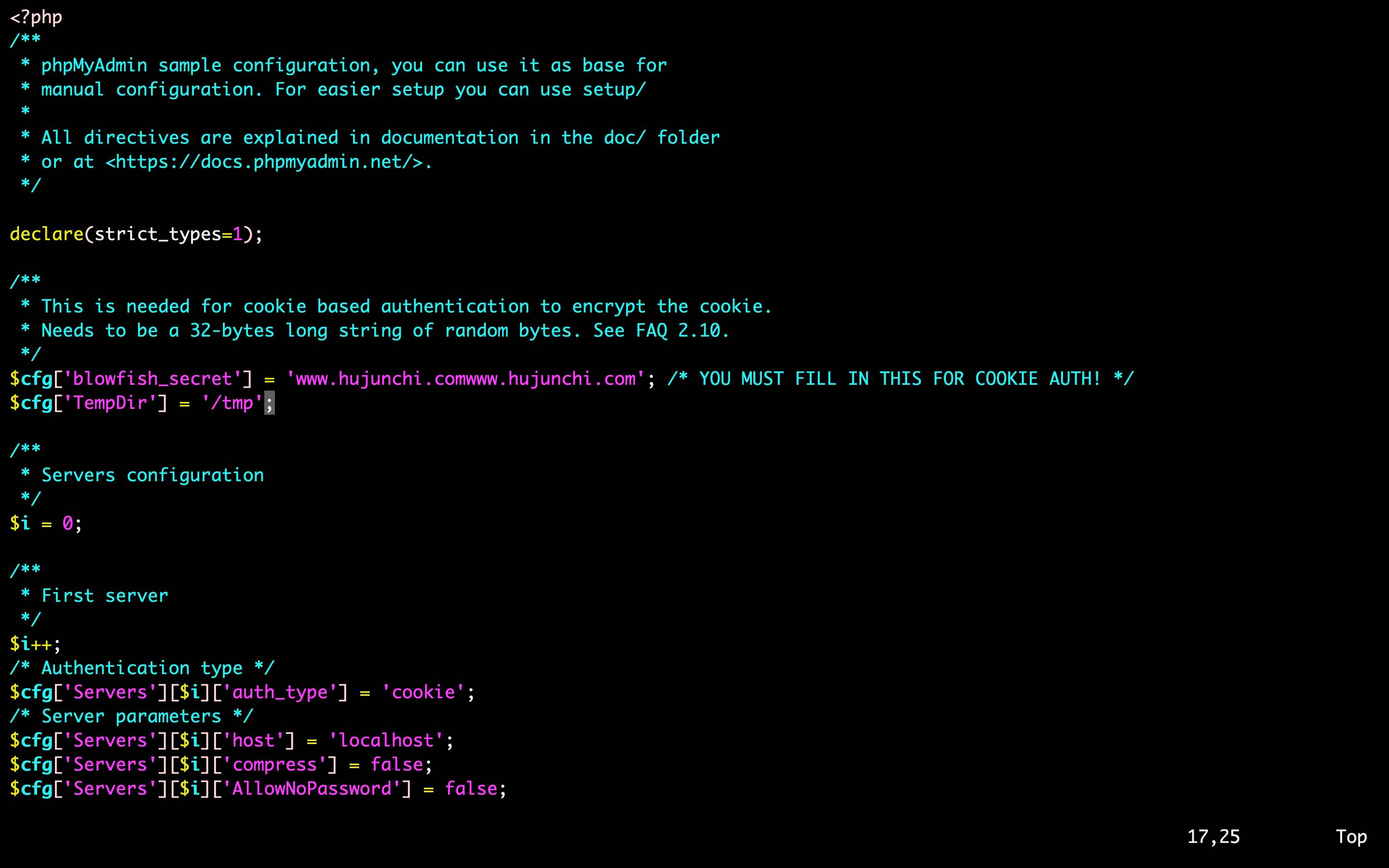 [root@hujunchi.com /var/www/html/phpmyadmin]#cp config.sample.inc.php config.inc.php