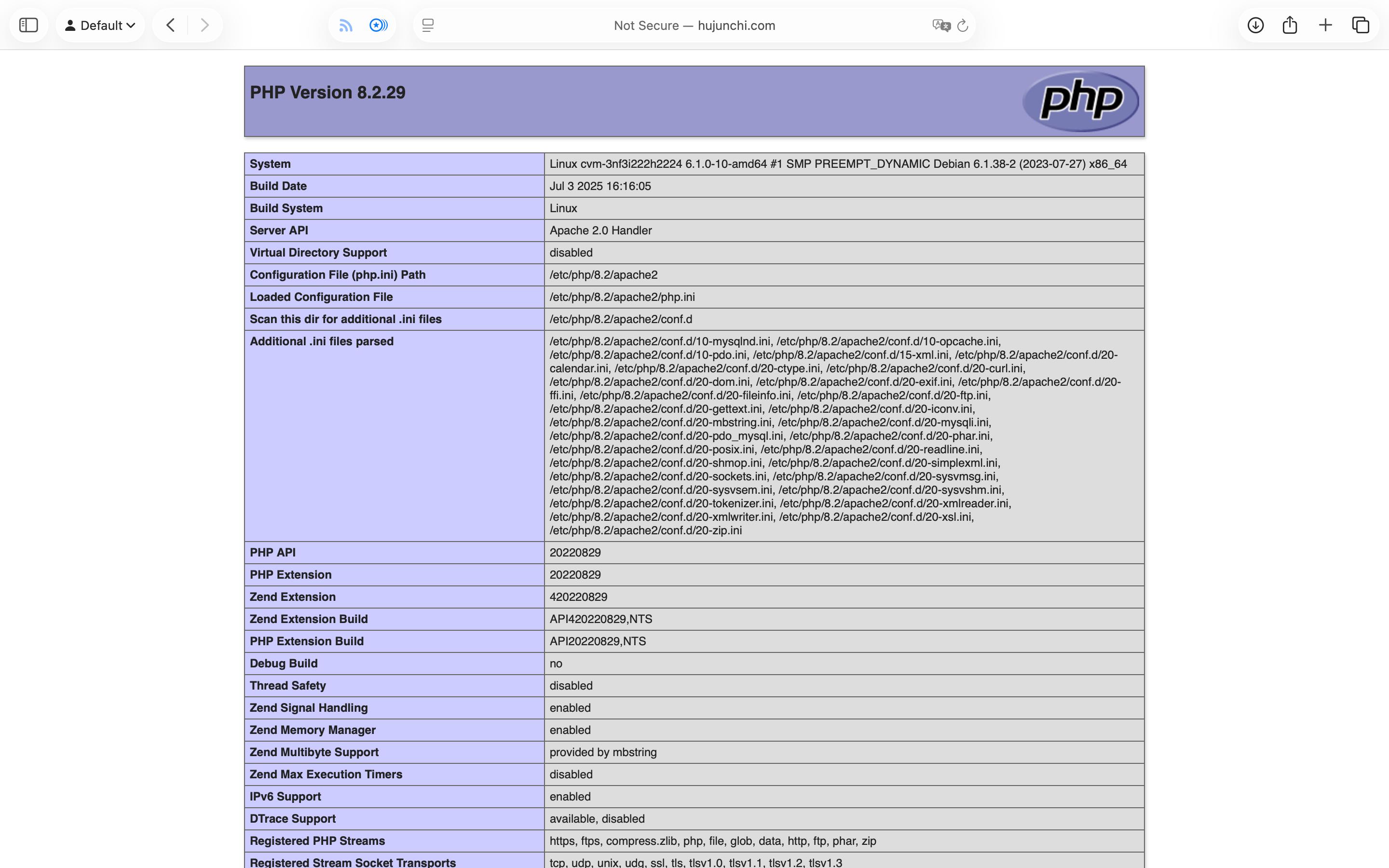 PHP 8.2.29 (cli) (built: Jul 3 2025 16:16:05) (NTS)
