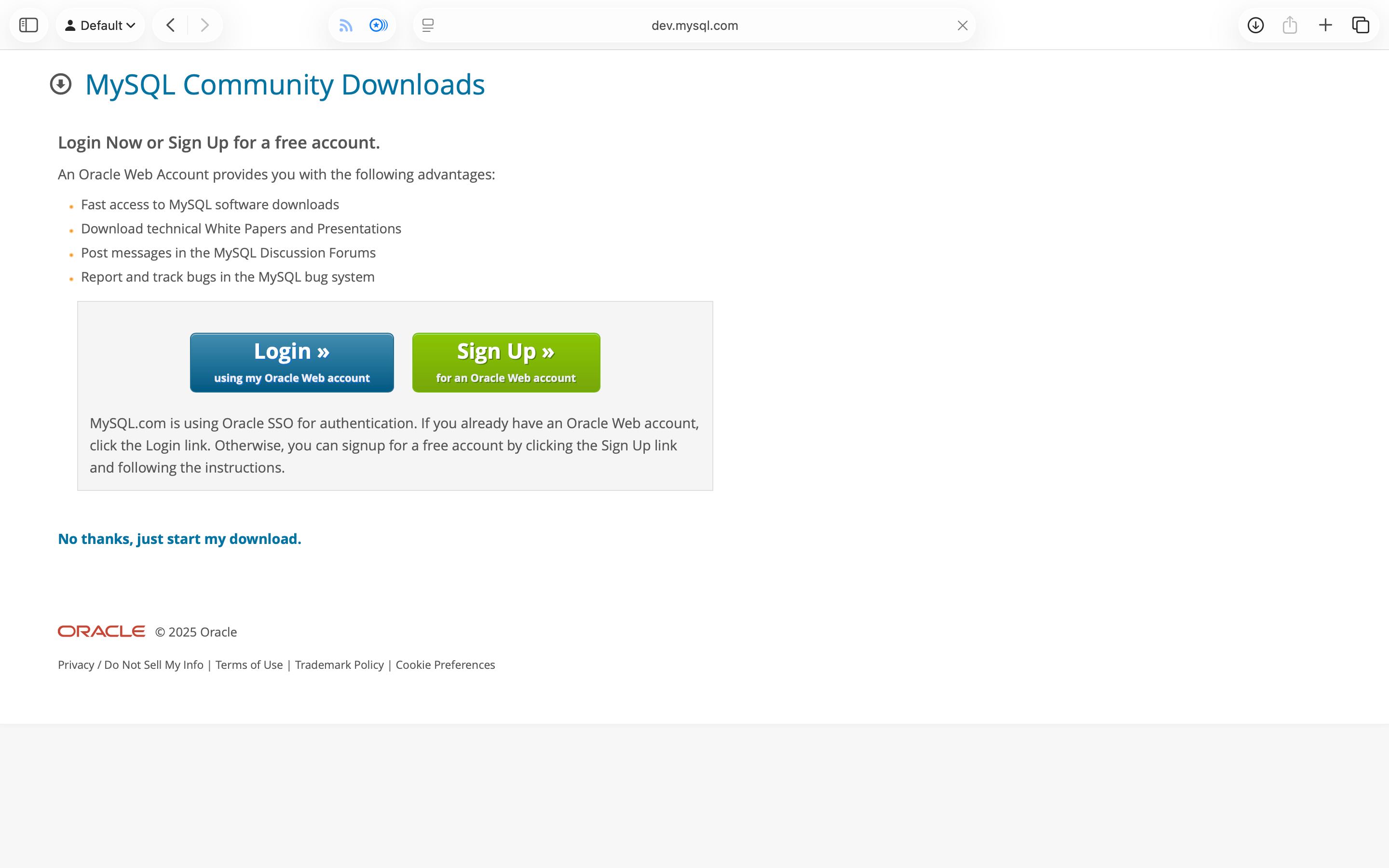 下载无需注册,可以直接点击 No thanks, just start my download 获取下载地址:
