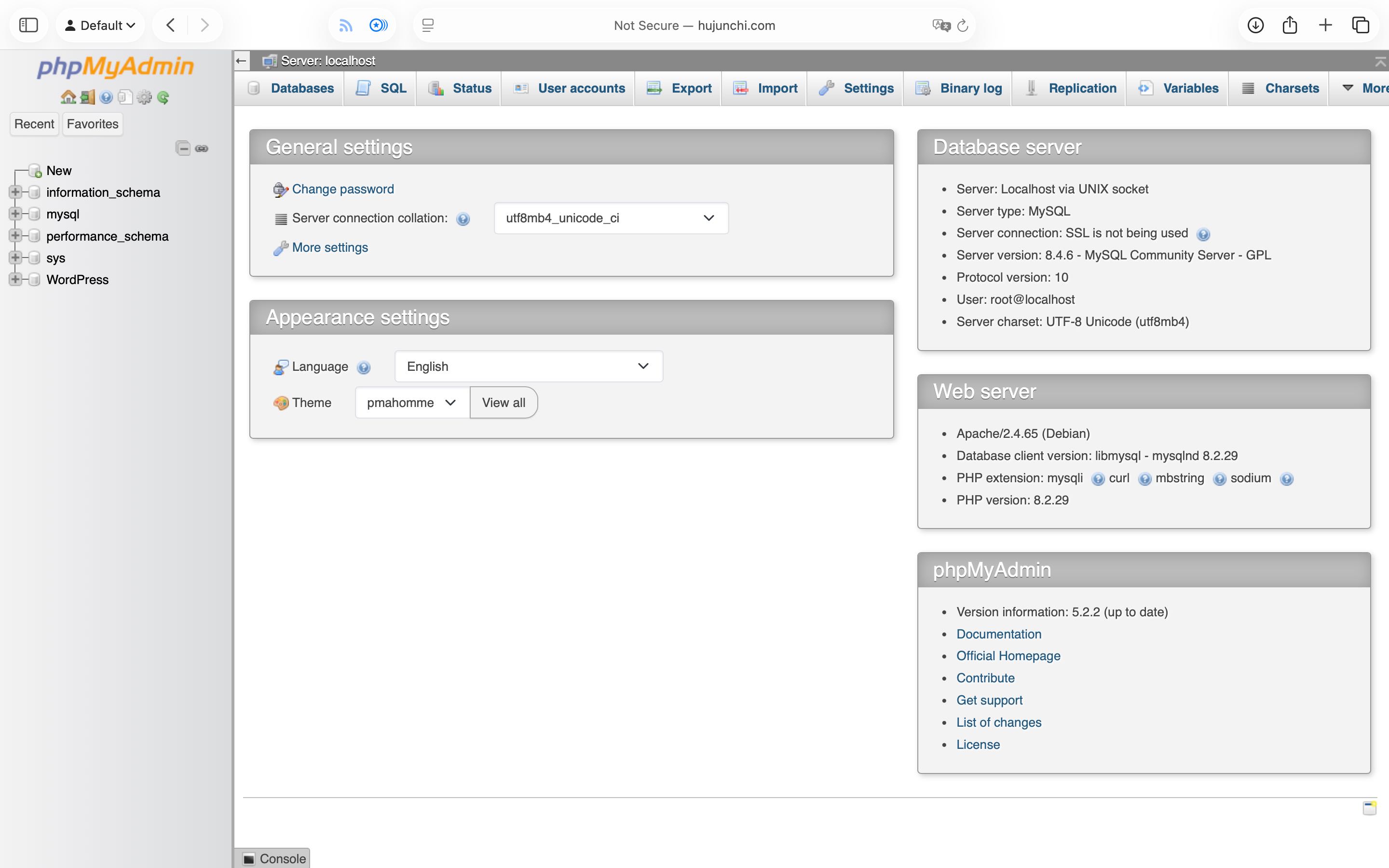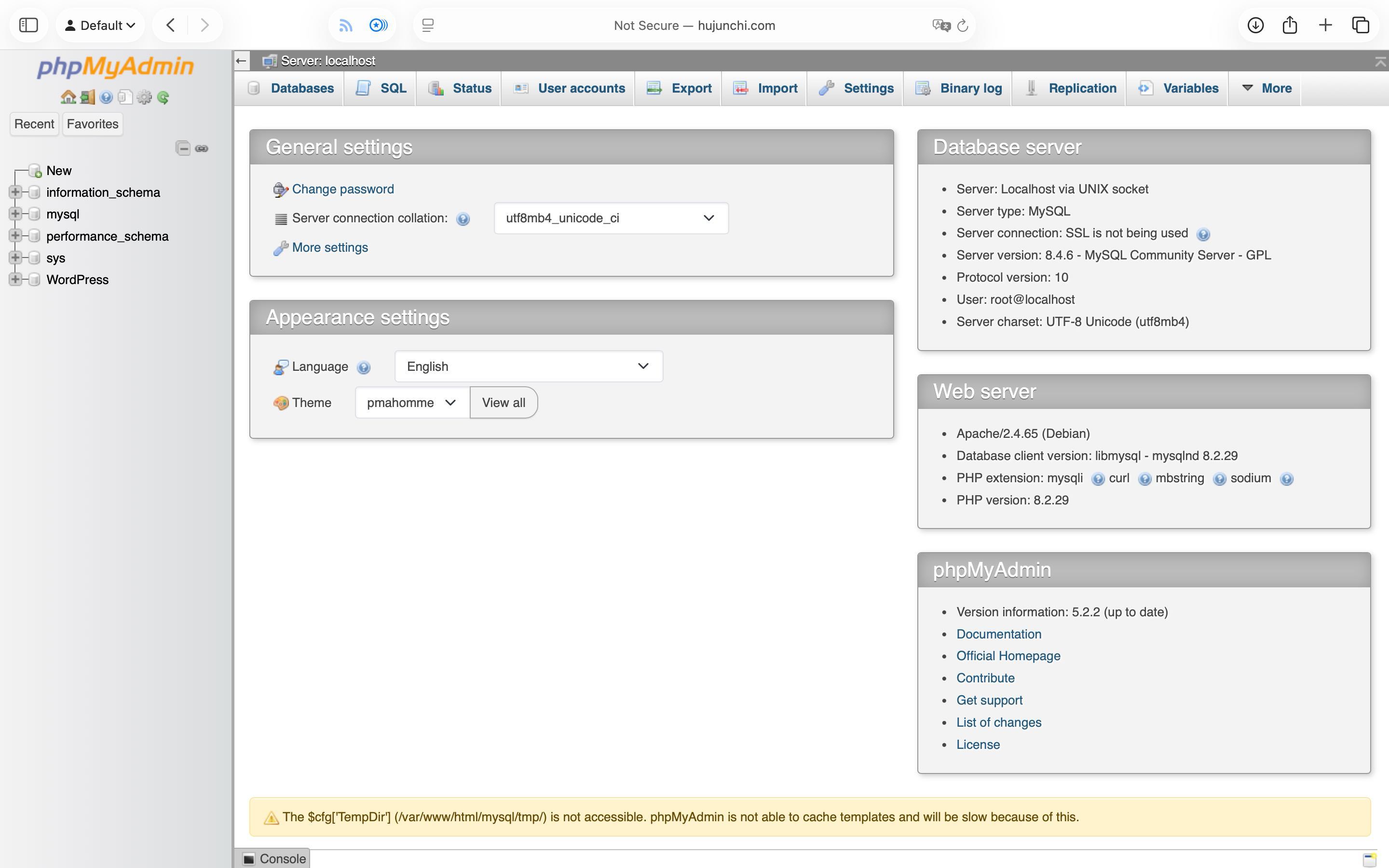 [root@hujunchi.com ~]#cd /var/www/html/phpmyadmin